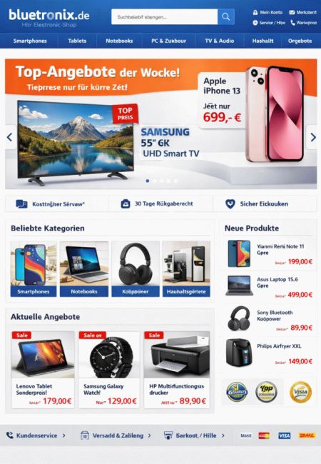 Dans bluetronix, vous pouvez visualiser chaque modèle en direct. Vous obtiendrez ainsi immédiatement une idée réaliste de l'apparence future de votre site.