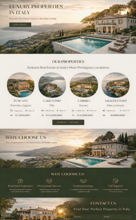 Formulaires avec protection Captcha, système de réservation, visites virtuelles, calendrier, galerie, zones protégées par mot de passe pour utilisateurs enregistrés, évaluations clients et bien plus.